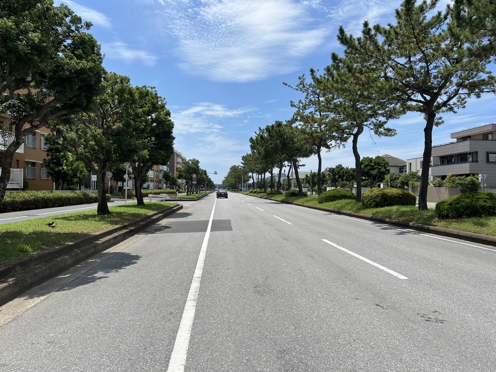 稲毛駅西口を背にして右側を見るとリカープラザの印象的なビルがある。このビルと交番の間の道を海岸まで直進する。車でもいいけど、お勧めは自転車!